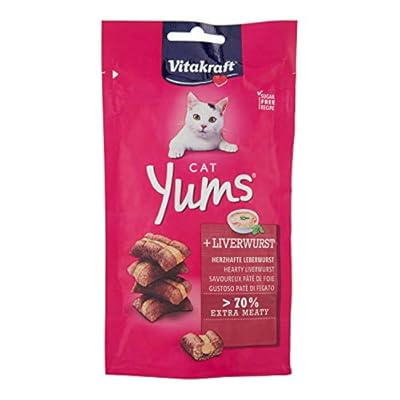 🇪🇸 Vitakraft Cat Yums golosina para gatos snack blando para gatos relleno de salchicha de hígado en bolsa resellable sin azúcar añadido 1x 40g