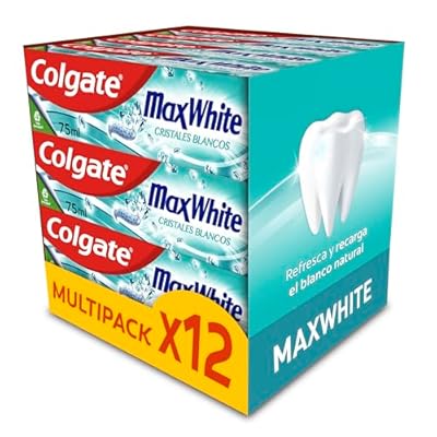 Colgate Max White Pasta de Dientes Cristales Blancos 12x75ml frescor potenciado por UltraFreeze 10x más duradero recupera el blanco natural de tus dientes explosión instantánea de fresco