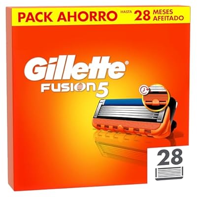 🇪🇸 Gillette Fusion5 Pack de 28 Recambios Para Maquinillas De Afeitar Cuchillas De Afeitar Con 5 Hojas Banda De Gel Lubricante y Recortadora De Precisión