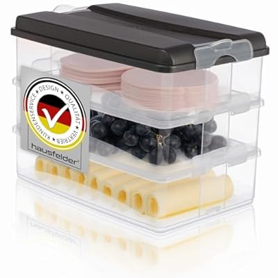 Hausfelder caja de frigorífico fiambrera triple - apilable con tapa - caja de salchichas cajon fiambreras figorifico 3 x 2 3 L