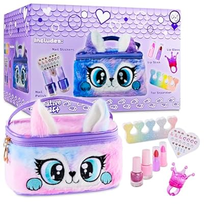 KreativeKraft - Maquillaje para Niños Set Maquillaje y Pintauñas para Niñas Pintauñas Infantil No Toxico Lavable con Agua Pintauñas Niñas Mayores de 5 Años Morado/Rosa