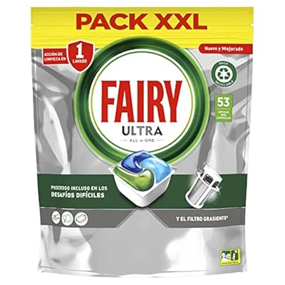 🇪🇸 Fairy Ultra Original Todo en Uno Pastillas Lavavajillas 53 cápsulas Elimina Acumulacion Grasa en Lavavajillas Aroma Limpio y Fresco