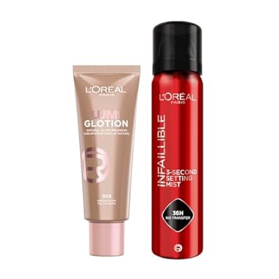 🇪🇸 L Oreal Paris - Pack L oréal Paris Lumi Glotion Fórmula Iluminadora Tono Medium + Spray Fijador de Maquillaje Infaillible Resistente al Agua Se Mantiene Hasta 36h 75 ml