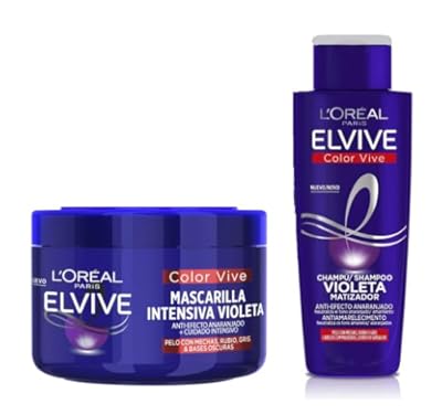 🇪🇸 Pack L oreal Elvive Champú 200 Ml Purple+ L Oreal Paris Elvive Color Vive Mascarilla Intensiva Violeta Matizadora Para Pelo con Bases Oscuras Mechas o Decolorado 250 ml