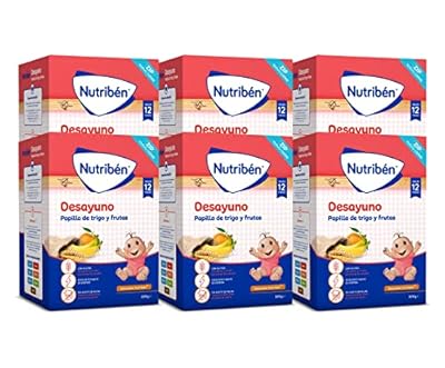 🇪🇸 Nutribén Papilla de Copos de Trigo y Frutas para el Desayuno 4500 g Sin Aceite de Palma Alimento para Bebés desde los 12 Meses Pack de 6 x 750g