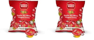 🇪🇸 CAPRICHO ANDALUZ Aceite de Oliva Virgen Extra Bolsa de 10 Unidades de Monodosis de 10 ml– Porciones Individuales con Envasado Práctico Ideal para Llevar. Paquete de 2
