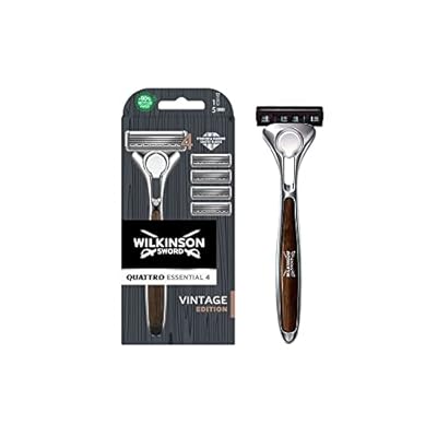 🇪🇸 Wilkinson Sword - Maquinilla de afeitar Quattro Vintage Edition - Paquete con 1 mango y 5 cuchillas de recarga