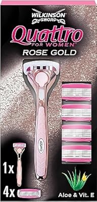 🇪🇸 Wilkinson Sword Quattro for Women - Maquinilla Depilatoria de Mujer con 4 Recambios de Cuchillas de 4 Hojas con Banda de Vitamina E y Aloe Vera