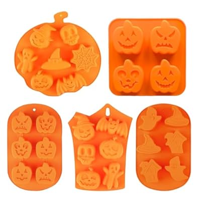 🇪🇸 ZOOMPIL Moldes de Silicona para Halloween 5 Piezas Molde de Silicona de Calabaza de Halloween para Gelatina de Cara de Calabaza Caramelos de Calavera Chocolate